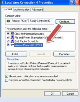 - Pada Jendela " General ", Klik dua kali pada Internet Protocol (TCP/IP).